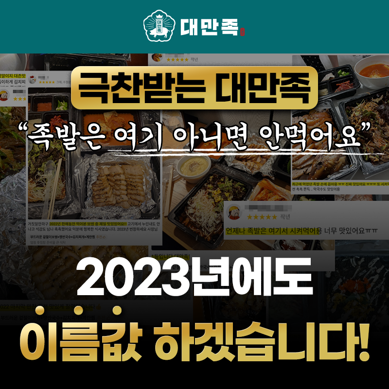 고객에게 극찬받는 대만족 족발!"족발은 여기 아니면 안먹어요!"올해에도대만족 이름 값, 하겠습니다!대만..